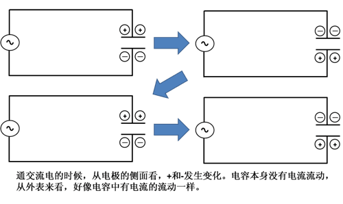 電容器不能通過(guò)直流電。如果重復(fù)充電和放電,充電電流和放電電流將在電容器中反復(fù)流動(dòng)。