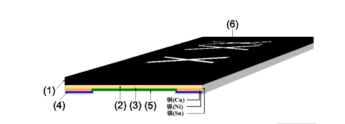 4. 端電極:錫、鎳、銅(Sn﹑Ni﹑Cu);