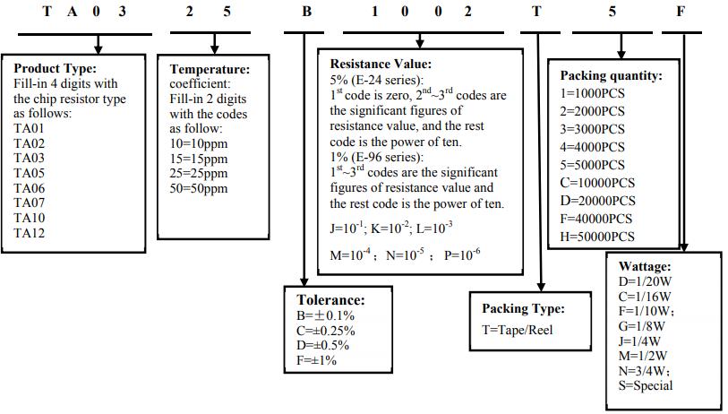 2.1第1~4代碼:電阻名稱。例如:TA01、TA02、TA03、TA05、TA06、TA07、TA10、TA12