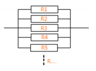 3、綜合以上因素產(chǎn)生的電阻值,最后并聯(lián)形成如下圖所示的電阻:R=(R1+R2+R3+R4...)/Rn