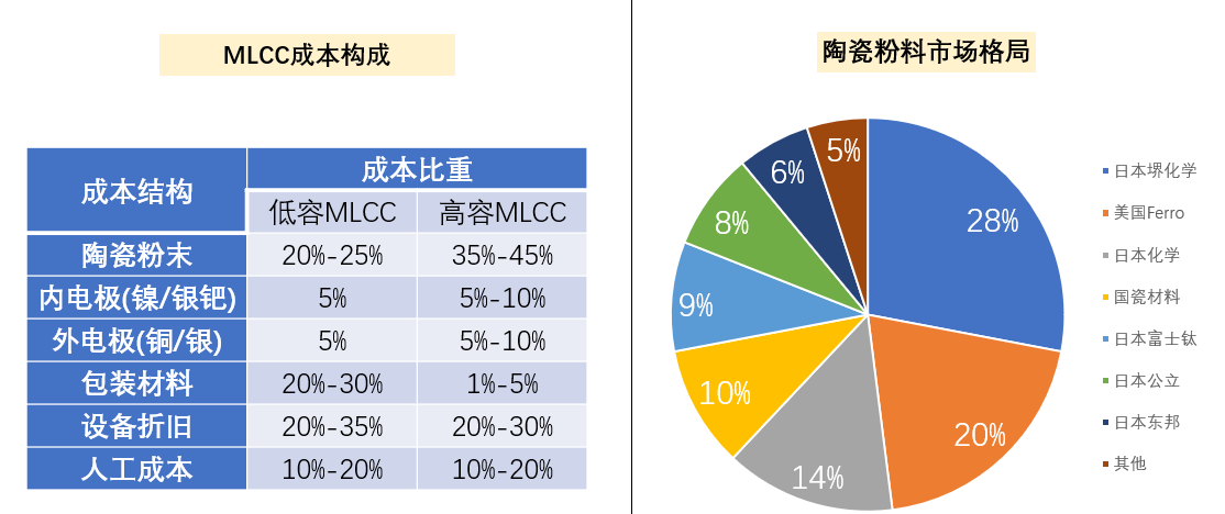 目前,中國大陸電容器制造商正面臨來自產(chǎn)業(yè)鏈上下游的雙重壓力。下游壓力主要來自原材料供應(yīng)。中國僅有一家瓷粉企業(yè)上榜,全國陶瓷材料排名第四,市場占有率為10%。值得一提的是,作為中國陶瓷粉體行業(yè)的龍頭企業(yè),中國陶瓷材料是繼日本日化后,中國第一家掌握水熱合成納米鈦酸鋇粉體技術(shù)的企業(yè),也是世界第二家掌握水熱合成納米鈦酸鋇粉體技術(shù)的企業(yè)。
