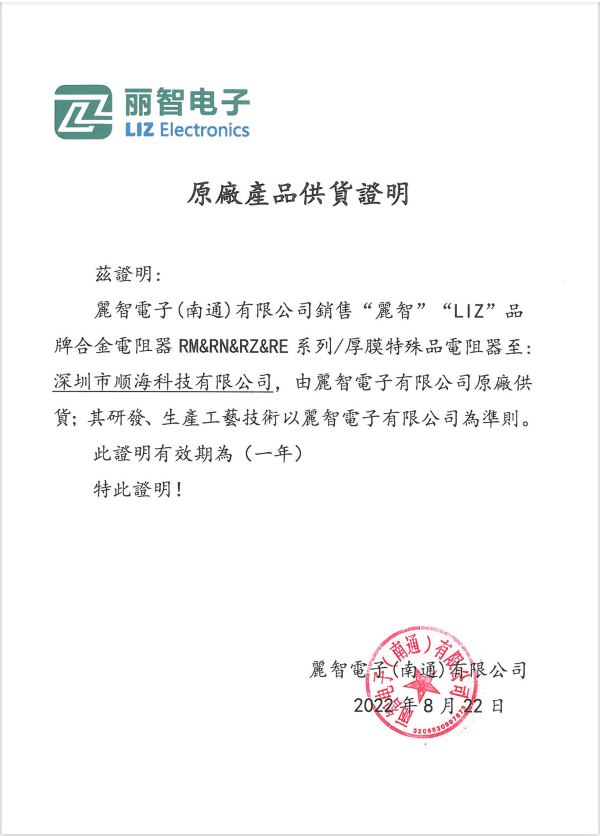 麗智電子原廠經(jīng)銷證書已更新(2026.1.1)